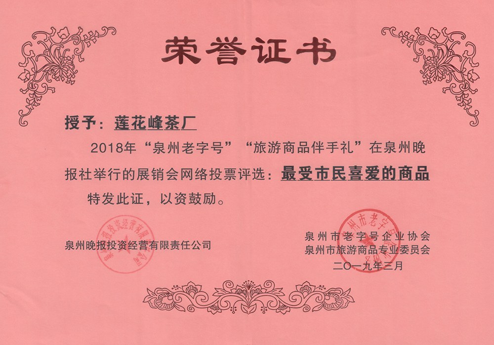 2019年的评选为泉州市“最受市民喜爱的商品”