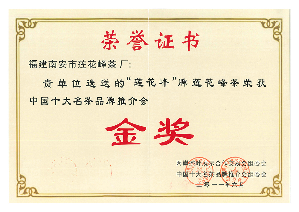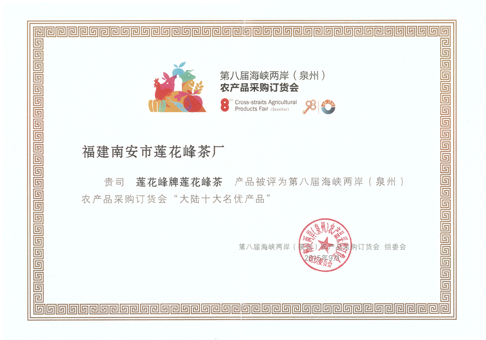 2015年莲花峰牌莲花峰茶荣获海峡两岸产品订货会大陆十佳产品