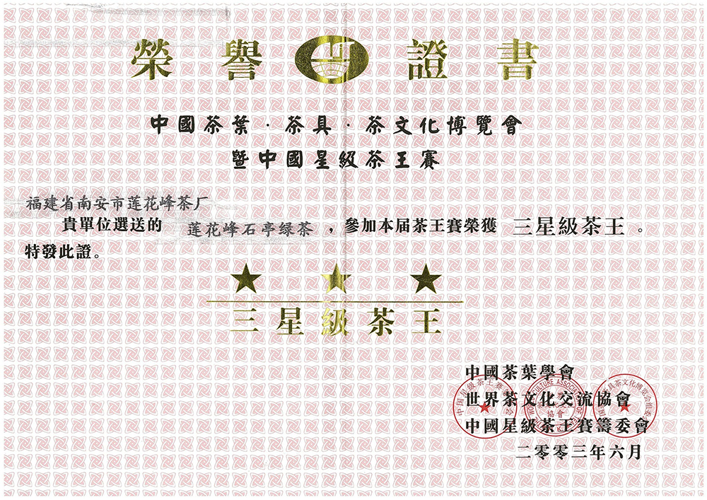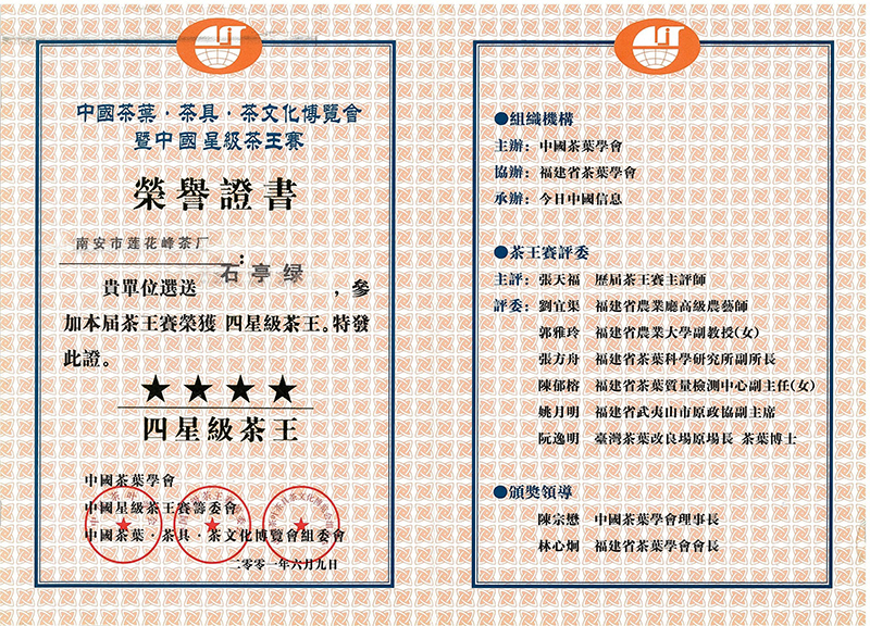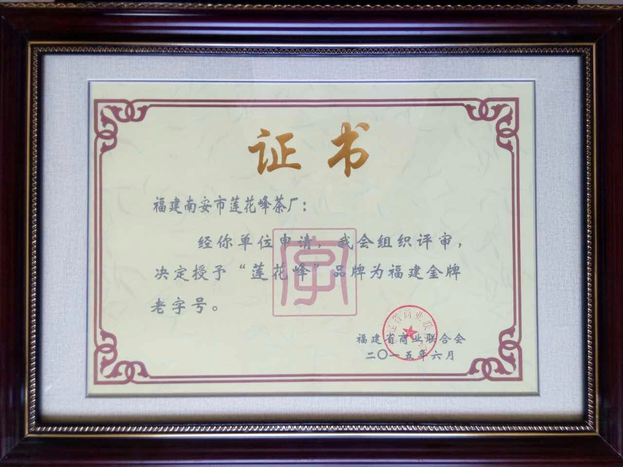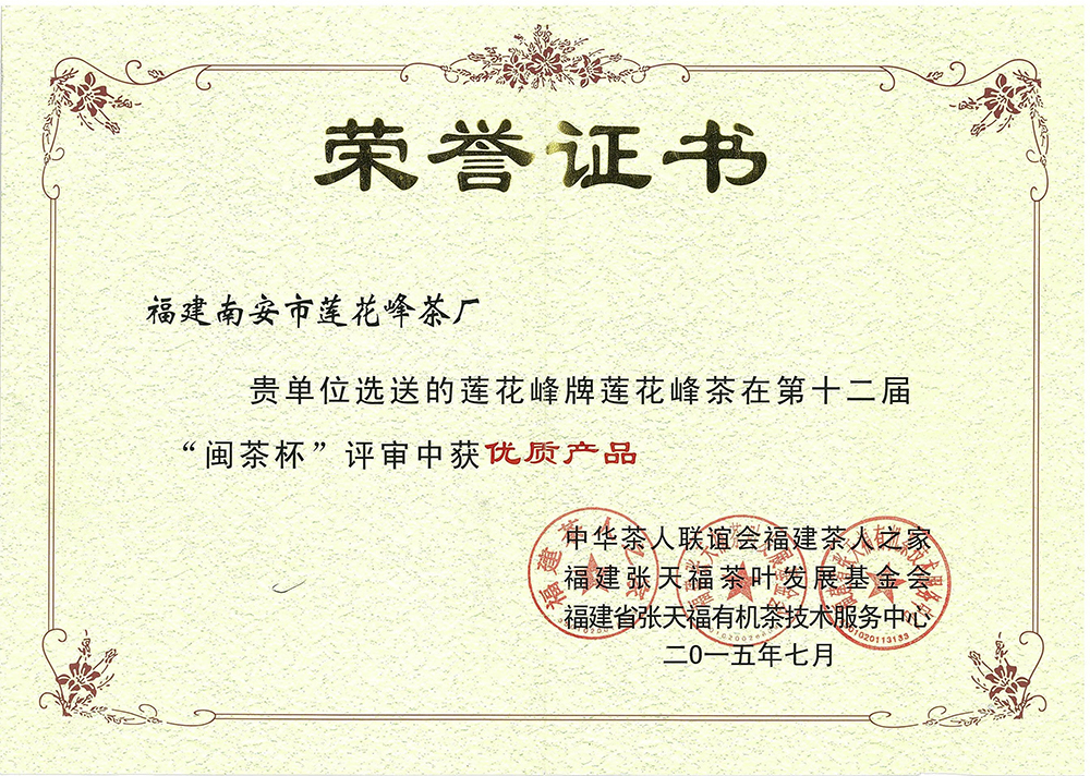 2015年荣获张天福茶叶发展基金会“闽茶杯”优质产品奖