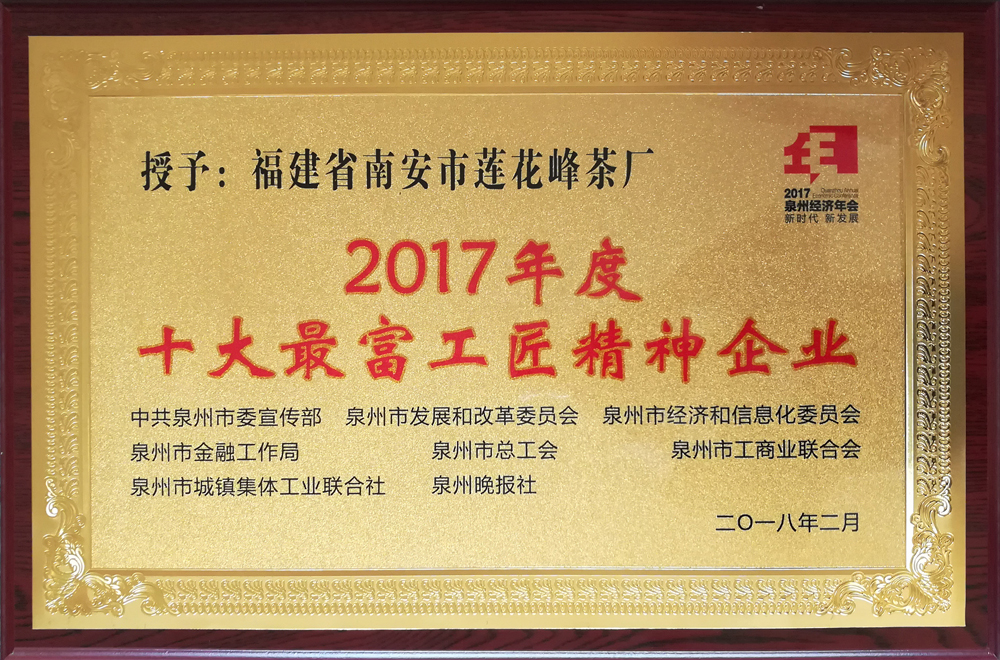 2018-3-1No1000:弘扬“工匠精神”,传承“莲花峰茶”——热烈庆祝福建省南安市莲花峰茶厂荣膺2017年度十大最富工匠精神企业